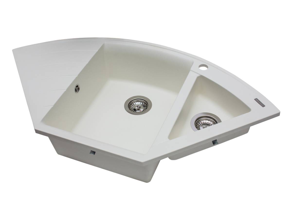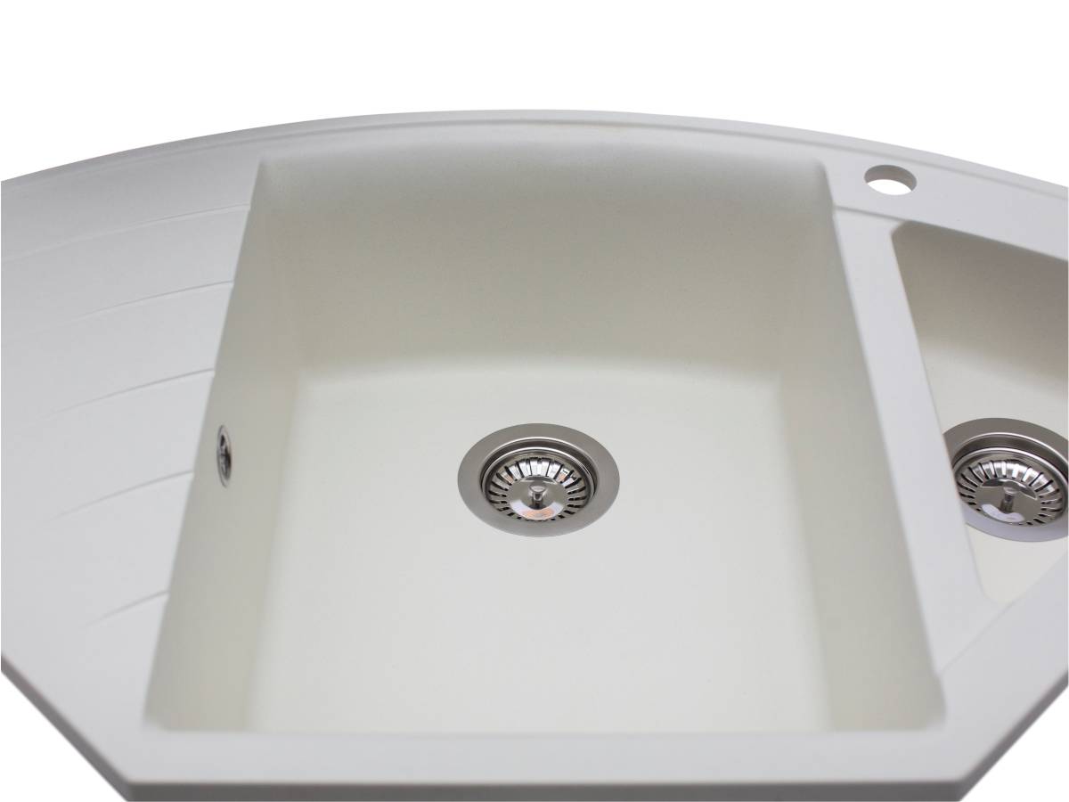 Кухонна мийка EUROPE біла має однорідну текстуру та колір. Вона не вбирає запахи, відштовхує жир та забруднення, а також не змінює свого кольору у процесі використання.