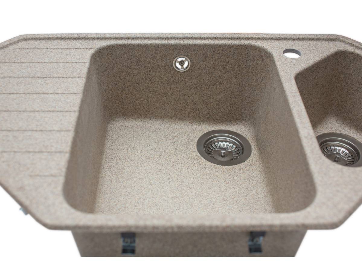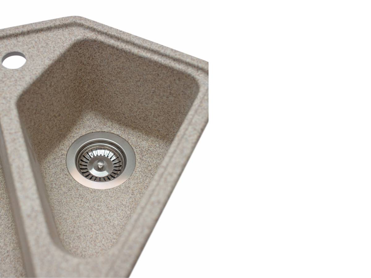 Кухонна мийка TIRION терра має однорідну текстуру та колір. Вона не вбирає запахи, відштовхує жир та забруднення, а також не змінює свого кольору у процесі використання.