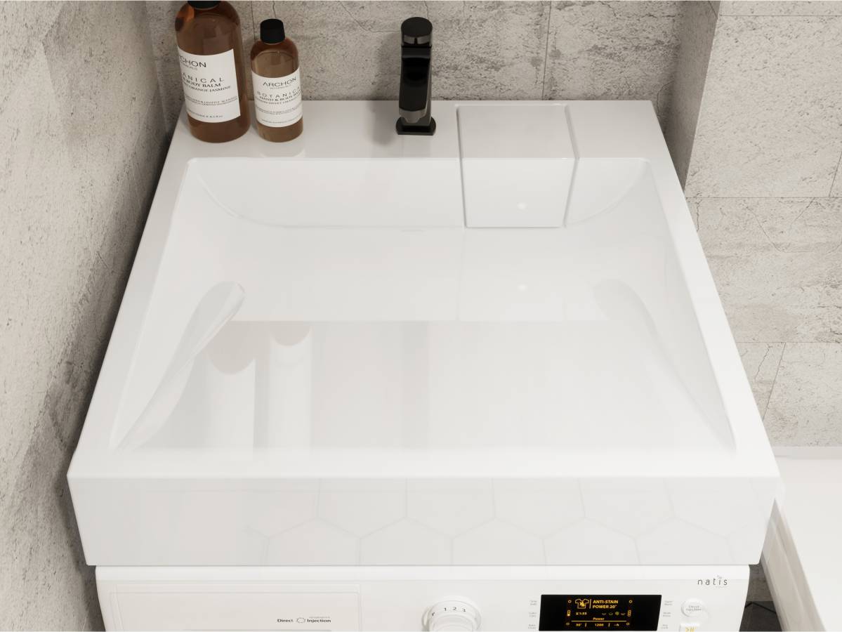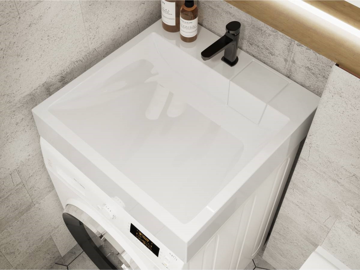 Умивальник TALLINN з литого мармуру MIRAGGIO. Литий мармур — твердий та довговічний матеріал. Основним компонентом суміші є мелена мармурова крихта, яку змішують з поліефірними смолами. Раковина покривається антибактеріальним гелем Gelcoat ISO NPG, який робить виріб міцним та білосніжним.
